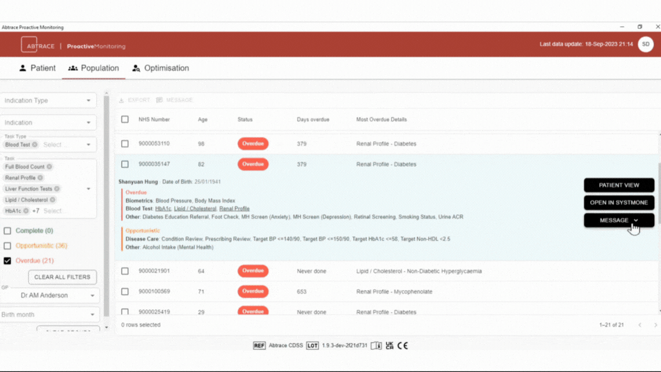 Be confident that everything the patient needs doing will be actioned. Message the patient straight from the patient view.